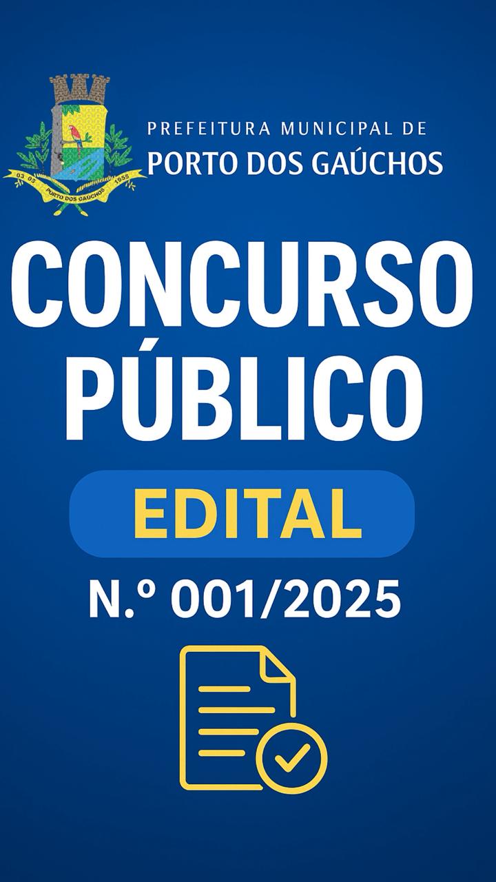 Prefeitura de Porto dos Gaúchos publica Edital do Concurso Público 001/2025.